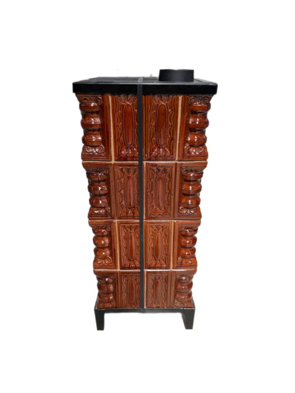 Avantaje și dotări:Plită din fontă – practică pentru prepararea mâncărurilor Construcție tip turn – stabilă și compactă, ideală pentru spații mai mici Uși din fontă rezistentă – durabile și ușor de utilizat Design tradițional din teracotă maro – aspect elegant și păstrarea căldurii pentru mult timp Încălzire eficientă – potrivită pentru încăperi de dimensiuni medii