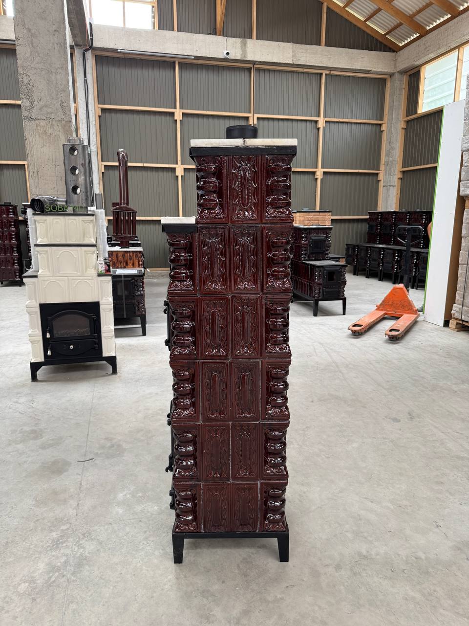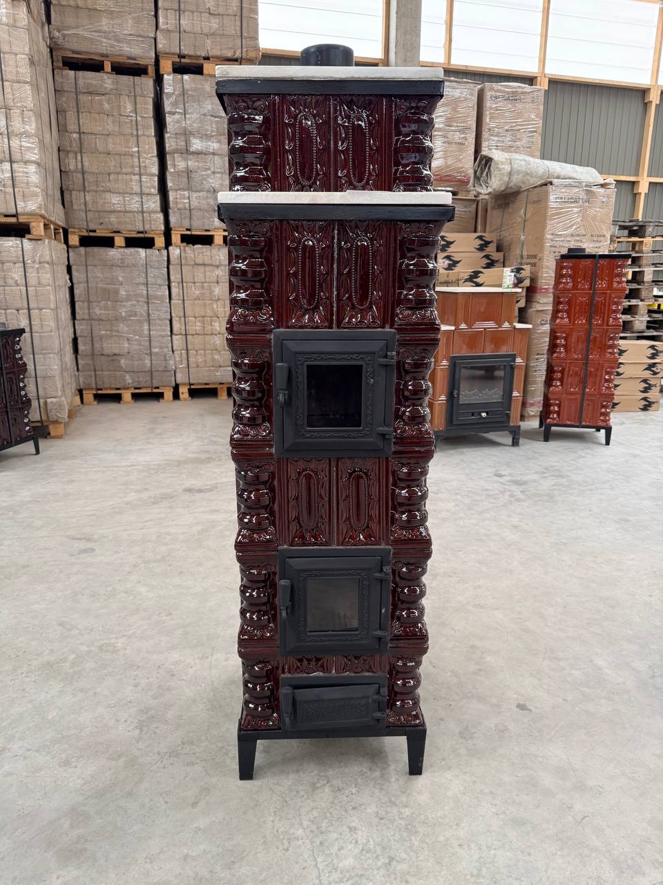 Avantaje și dotări:Cuptor integrat – ideal pentru preparate tradiționale la foc de lemne Plită din fontă – practică pentru gătit și încălzit mâncarea 6 rânduri de teracotă maro – masivă, rezistentă și cu retenție excelentă a căldurii Marmură elegantă – adaugă rafinament și durabilitate Design tip turn – ocupă puțin spațiu la sol, dar oferă putere mare de încălzire