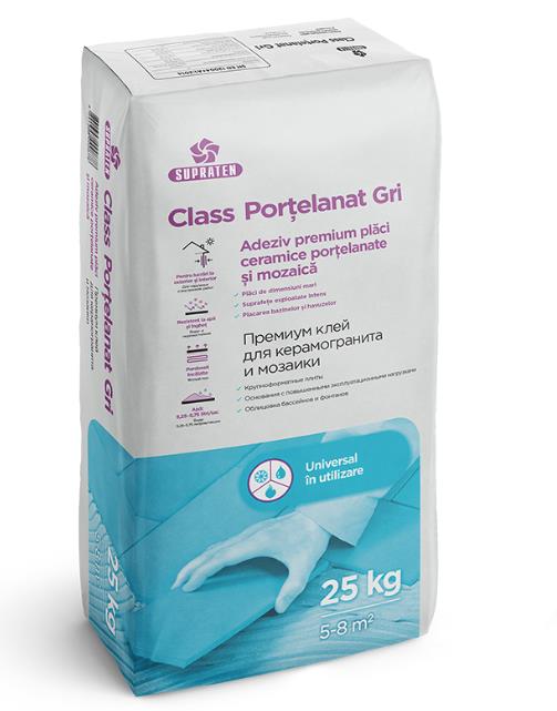 CLASS PORȚELANAT — adeziv din clasa premium pe bază de amestec de ciment special de calitate superioară, agenți reologici și de armare, polimeri și făină de cuarț calibrată.