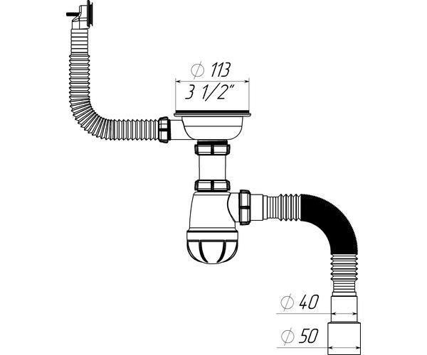 Sifon cu scurg. rotund pentru chiuv. 3 1/2 x40 si racord extens 40x40/50, Aquant