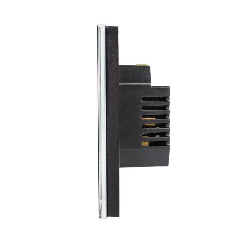 Întreupător Smart Negru, 2 Clapete, WiFi, cu Ramă din Sticlă, 1 Way, Neutral, 600W – 86x86 mm | Caligate