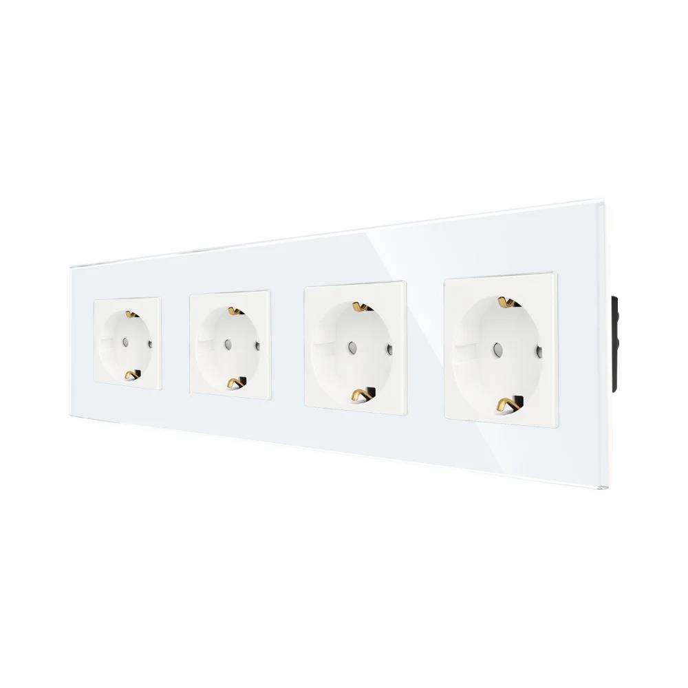 Priză Albă Cvadruplică cu Ramă din Sticlă – 16A, 86x299 mm | Caligate