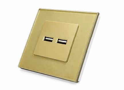 Priza GOLD, dubla USB/ 5V 3.1A/rama sticla/86x86mm / Caligate
