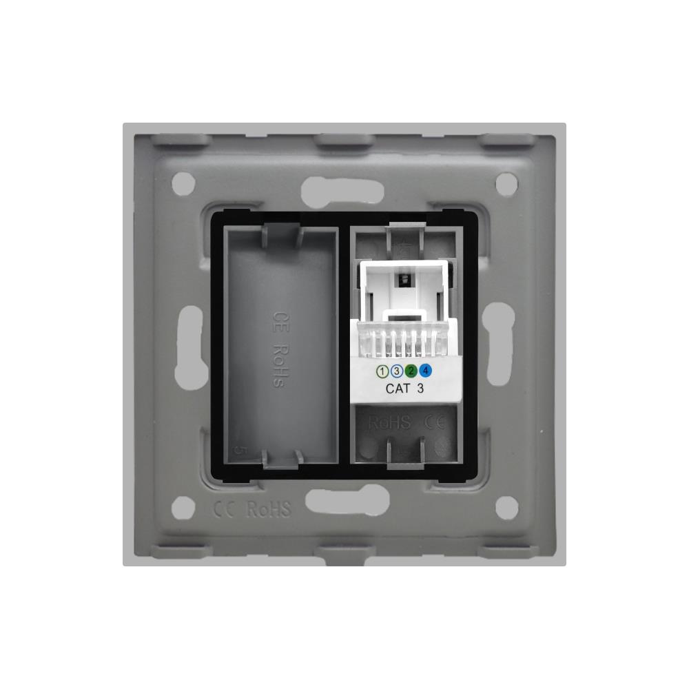 Priza media, GRI, 1/2 blank, 1/2 modul Internet CAT5E, rama sticla / 86x86mm / Caligate