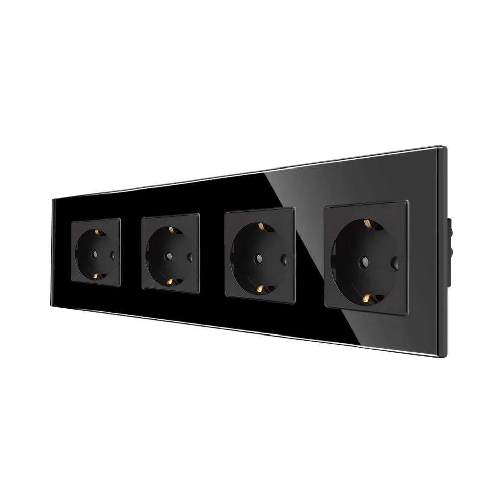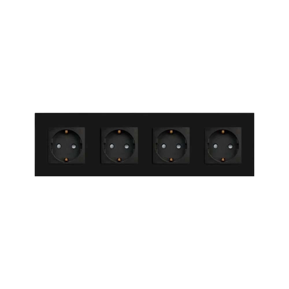 Priză Cvadrupă NEAGRĂ – Ramă din Sticlă, 16A, 86x299mm | Caligate