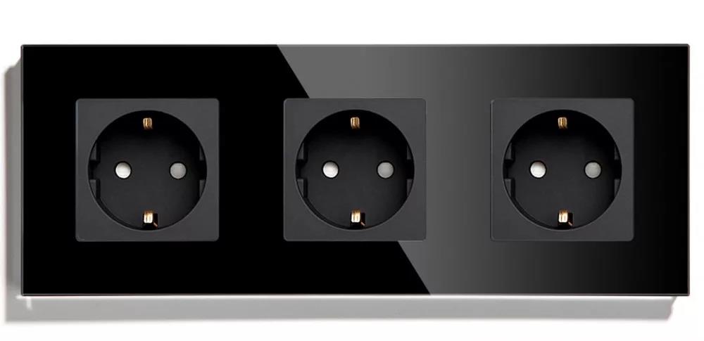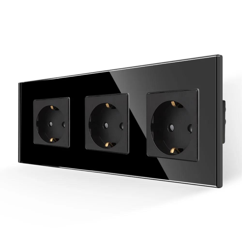 Priză Triplă NEAGRĂ – Ramă din Sticlă, 16A, 86x228mm | Caligate