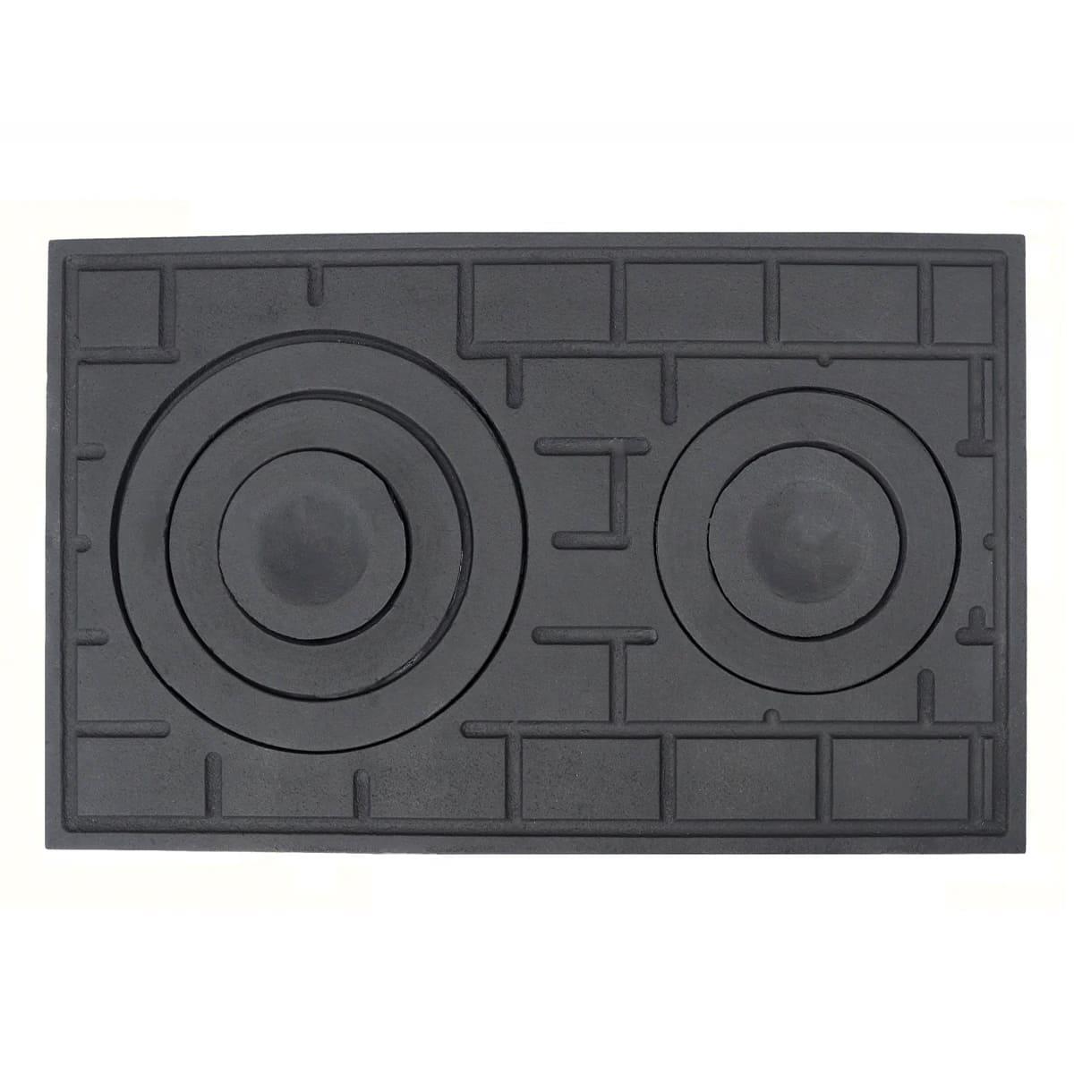Plită de fontă cu două ochiuri cu diametre diferite, ce poate fi folosită la construcția de sobe noi, dar și la sisteme barbeque.