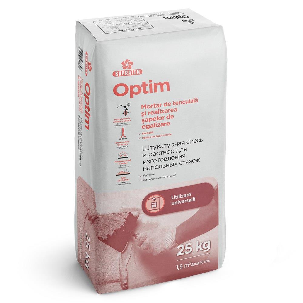 OPTIM — штукатурная смесь для ручного нанесения и изготовления напольных стяжек на основе цемента высшего качества, фракционированного песка и пластификаторов.