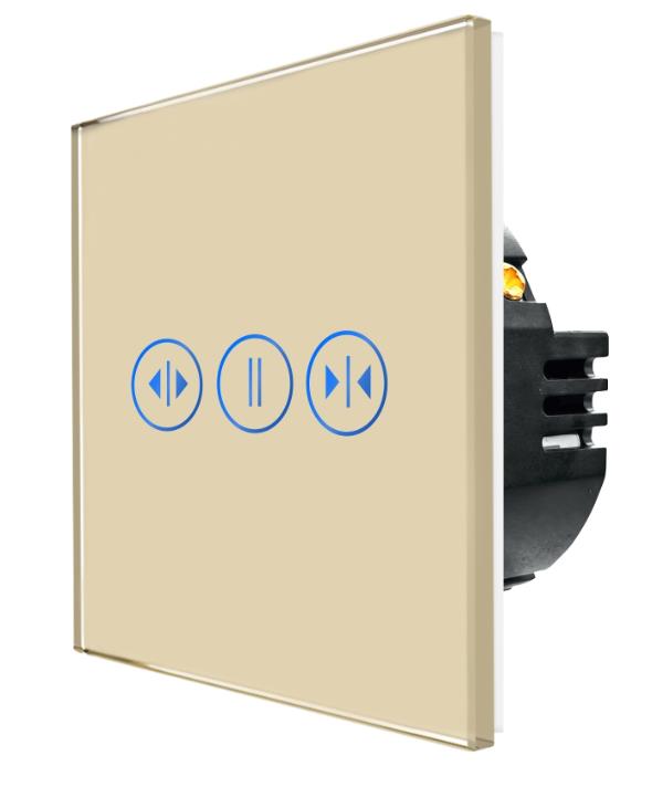 Întrerupător smart GOLD din sticlă, pt rulouri, cu WiFi. L+N. 86x86mm / Caligate