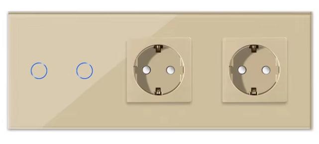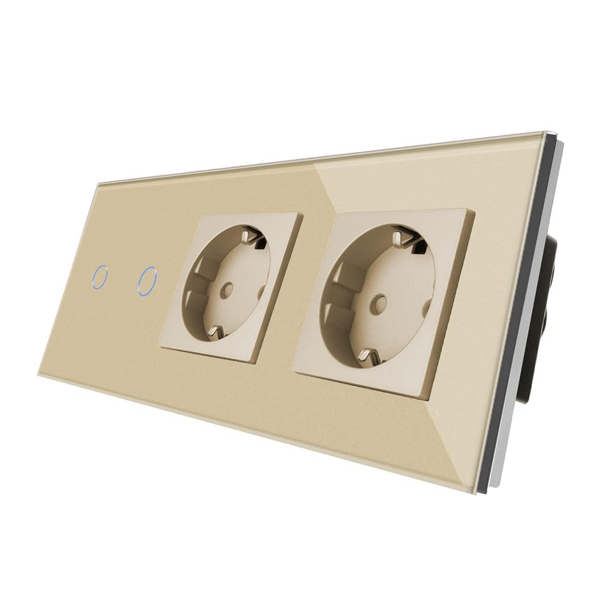 Intrerupator touch GOLD, 2 clape 1 way + 2 prize/neutral/16A/86x228mm / Caligate