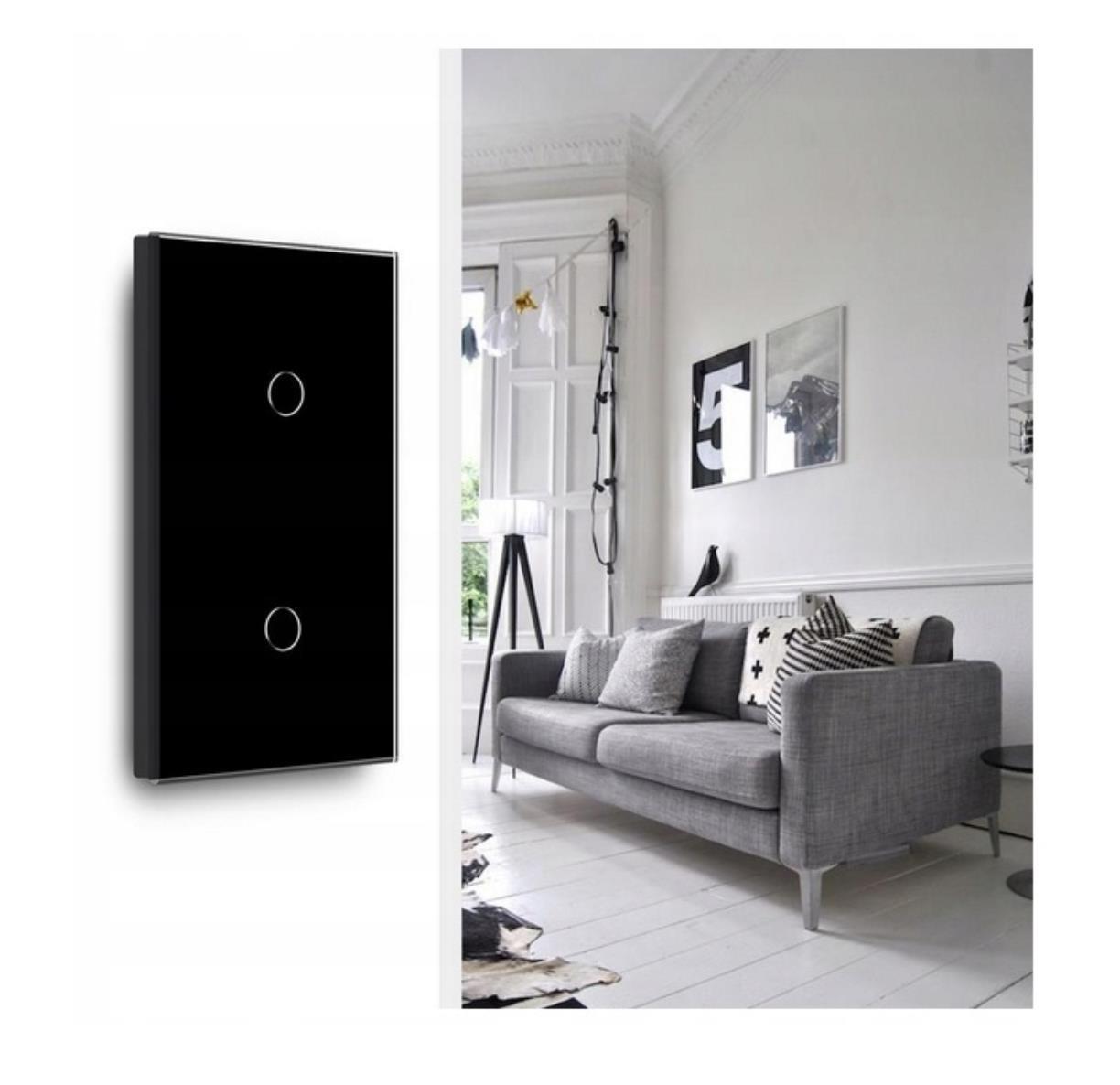 Intrerupator touch NEGRU, 1 clapa 1way + 1 clapa 1way, SIMPLU, 800w, 86x157mm / Caligate