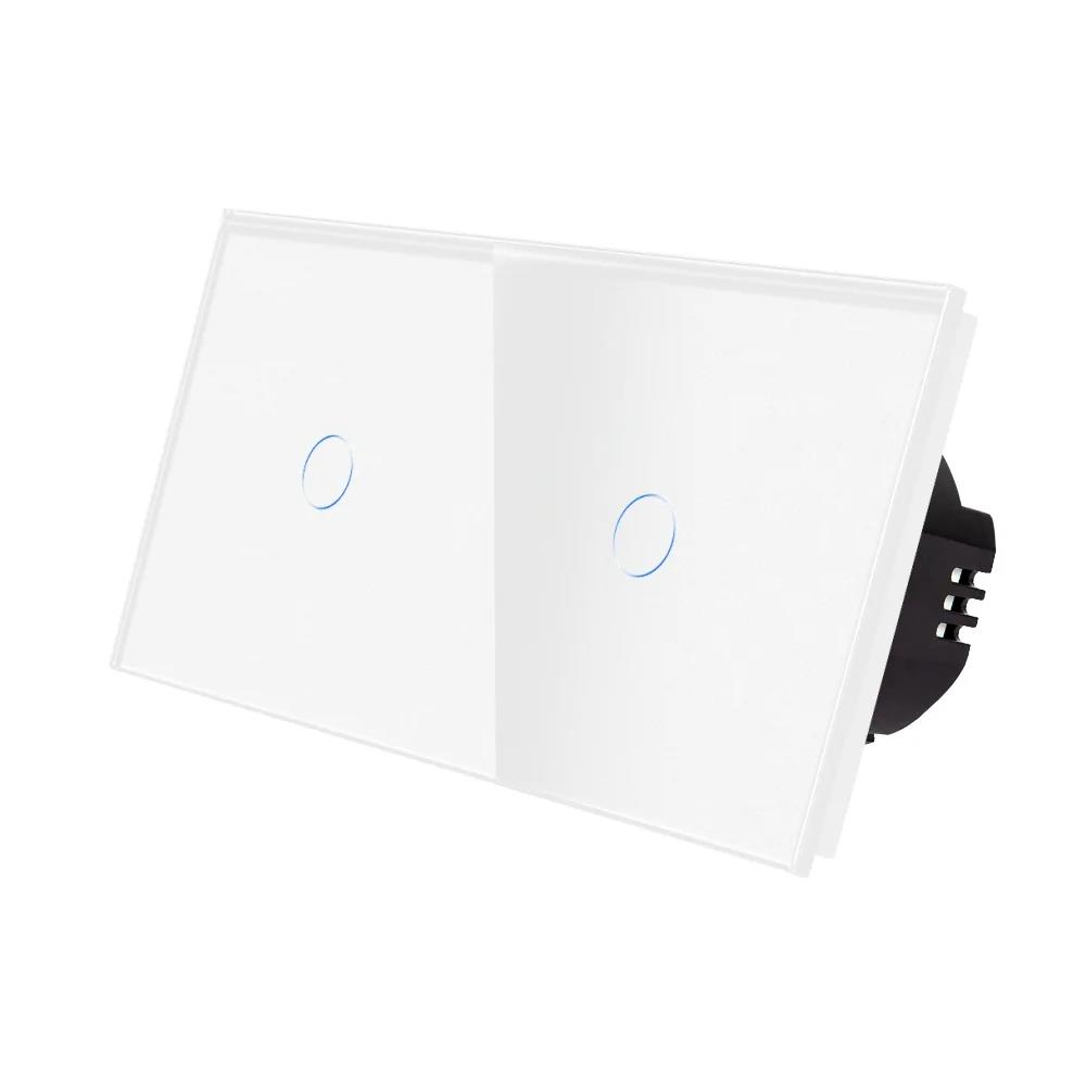 Intrerupator touch ALB, 1 clapa 1way + 1 clapa 1way, SIMPLU, 800w, 86x157mm / Caligate