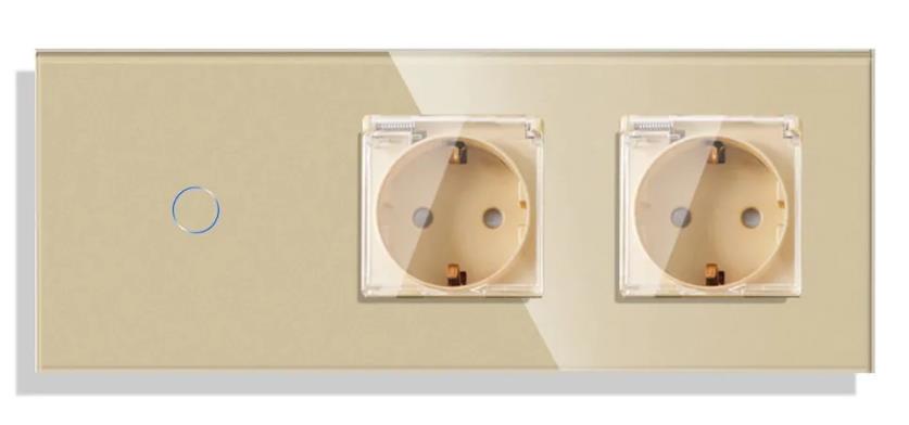 Intrerupator touch GOLD 1 clapa, cu capac protectie apa, 1 way + 2 prize/ SIMPLU /neutral/600w/16A/86x228mm / Caligate