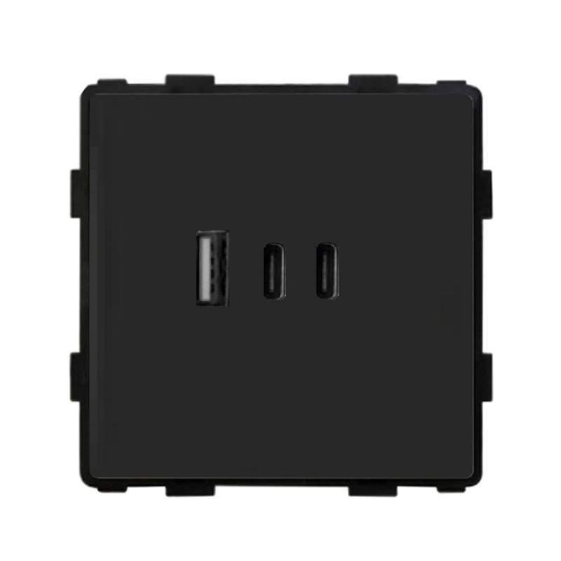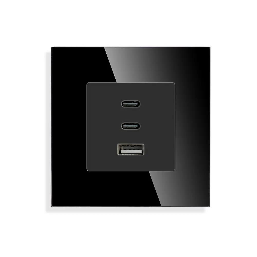 Priza NEGRU, 2 USB TYPE C + 1 USB/fast charge/65W/rama sticla / Caligate