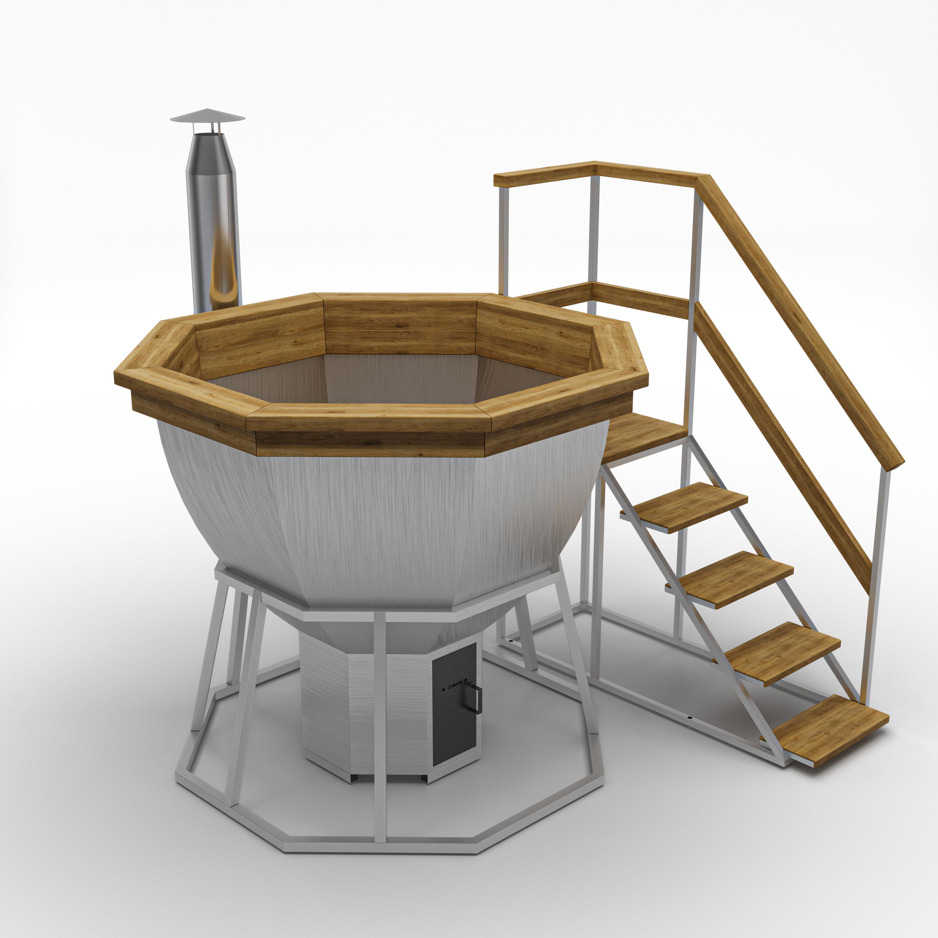 Nistru Resort – восьмиугольная купель на опоре, встроенная топка, лестница и дымоходВместимость: 8-10 человек