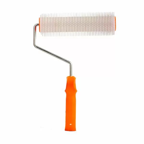 Валик игольчатый, с ручкой предназначен для предотвращения появления трещин в напольных покрытиях из жидких синтетических материалов. Изготовлен из материала, стойкого к воздействию растворителей. Применяется для равномерного распределения наливных полов по поверхности и удаления пузырьков воздуха, образующихся в процессе замешивания наливных составов.