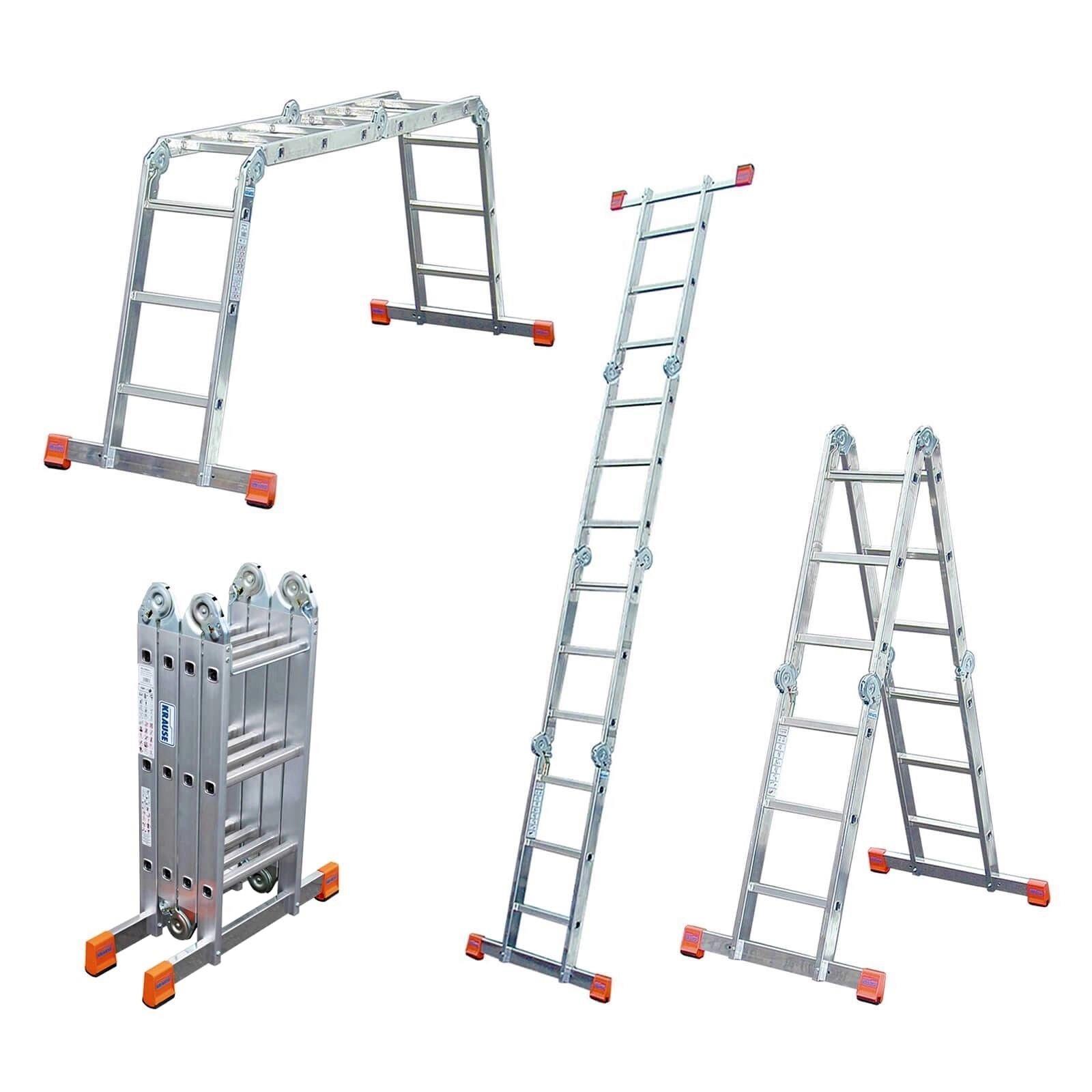 Scara aluminiu multifunctionala - Este o scară pliabilă în formă de U. Poate fi folosita in 3 variante - ca suport, dublu sau ca platforma de lucru.Scara multifunctionala, are balamale din patru parti care se blocheaza rapid si usor. Are riduri antiderapante bicomponente pentru calcai – primul asigura o legatura stabila cu umarul, iar al doilea previne alunecarea nedorita a scarii, asigurand o prindere stabila pe baza.Pe lângă faptul că este versatilă și ușor de utilizat, scara în formă de U este și foarte practică. Dimensiunile compacte permit transportul in portbagajul unei masini.
