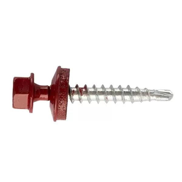 Саморез 4,8x55 мм RAL по дереву кровельный с уплотнительной шайбой EPDM предназначен для крепления кровельных материалов к деревянным конструкциям. Длина 55 мм обеспечивает глубокое проникновение и надежное соединение, а диаметр 4,8 мм гарантирует прочность крепежа. Цветное покрытие в соответствии с палитрой RAL позволяет подобрать саморезы под цвет кровельного покрытия, а резиновая шайба из EPDM обеспечивает дополнительную герметизацию, защищая соединение от влаги.
